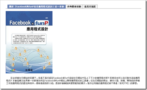 主要教導讀者在Facebook與funP中撰寫應用程式。