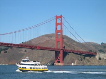 提到舊金山, 金門大橋絕對是數一數二的地標。 為了一睹金門大橋的風采, 我參加了金門大橋海灣之旅。 凡是參加這個行程的旅客, 可以搭乘從漁人碼頭出發的油輪, 繞行金門大橋一圈, 雖然直接從陸地也可以一窺金門大橋的景色, 可是如果不搭船, 是沒有機會從橋底往上仰視這座著名大橋的。