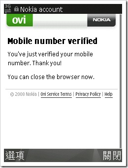 此時Nokia就會發送認證的簡訊到手機上。