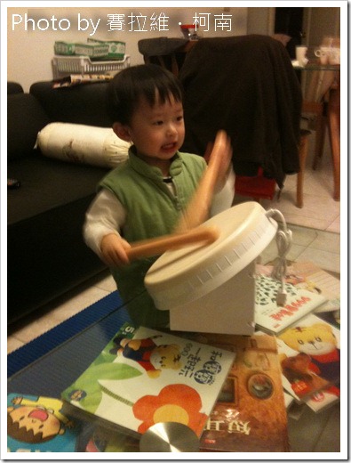 最近小柯南又多了一個新玩具,那就是wii遊戲太鼓達人和其搭配的鼓。瞧小柯南專心的模樣,一副就是蓄勢待發的感覺。看看照片中的鼓棒殘影,就知道小柯南打得有多麼賣力。不過其實他只要能打鼓就好,君不見這鼓完全沒有連結到wii主機XDD