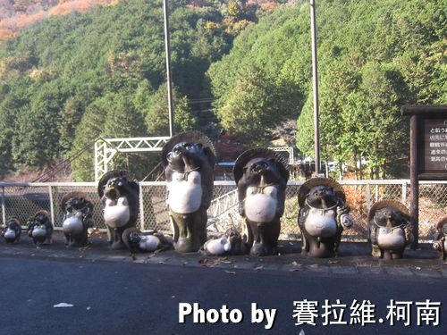 眼前的貍貓群像表示我和喵已經到達了龜岡車站,