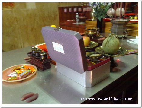 供桌上還有感謝月老恩賜姻緣的喜餅呢。