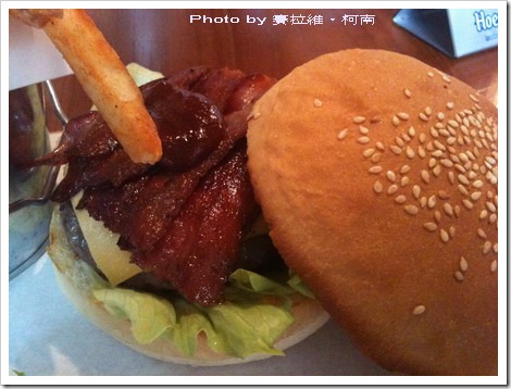 看著送上來的BBQ培根牛肉起司漢堡,
