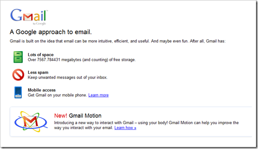 例如這個在英文GMail首頁出現的新功能Gmail Motion。